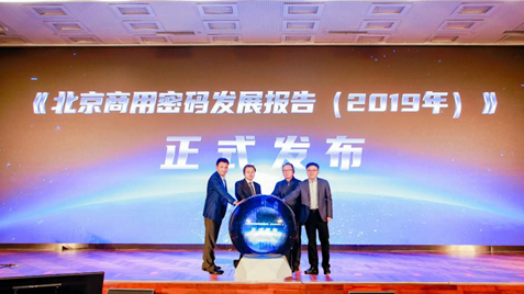 随后,迎来本次论坛的焦点环节——首次公开发布《北京商用密码发展报告(2019年)》。首先,由吴钢华局长、安晓龙副理事长、宋灵恩书记以及北京商用密码行业协会李勇秘书长共同上台启动发布仪式。紧接着,现场简要解读了报告的主要内容,总体看来,2019年北京商用密码产业收入规模达80亿元,在全国各省区市中保持领先地位;营业收入在1亿元以上的商用密码企业数量达到20家,北京16家密码企业总市值超2000亿元,密码领域的龙头企业集聚趋势正在北京形成,科创能力持续增强。